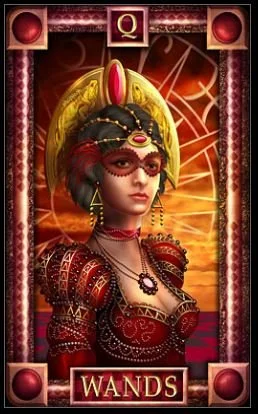 The Queen of Wands is a mature, confident, passionate person. She is dedicated to her pursuits in career, family, and love.