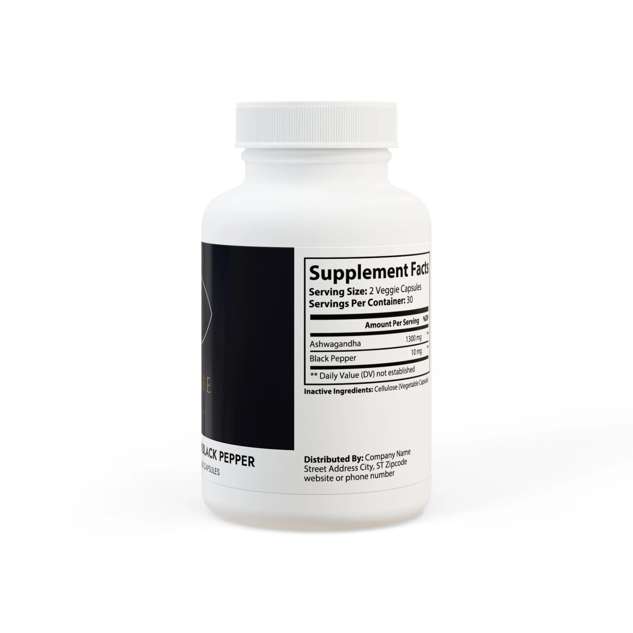 Ingredients: Ashwagandha, Black Pepper Inactive Ingredients: Cellulose (Vegetable Capsule)